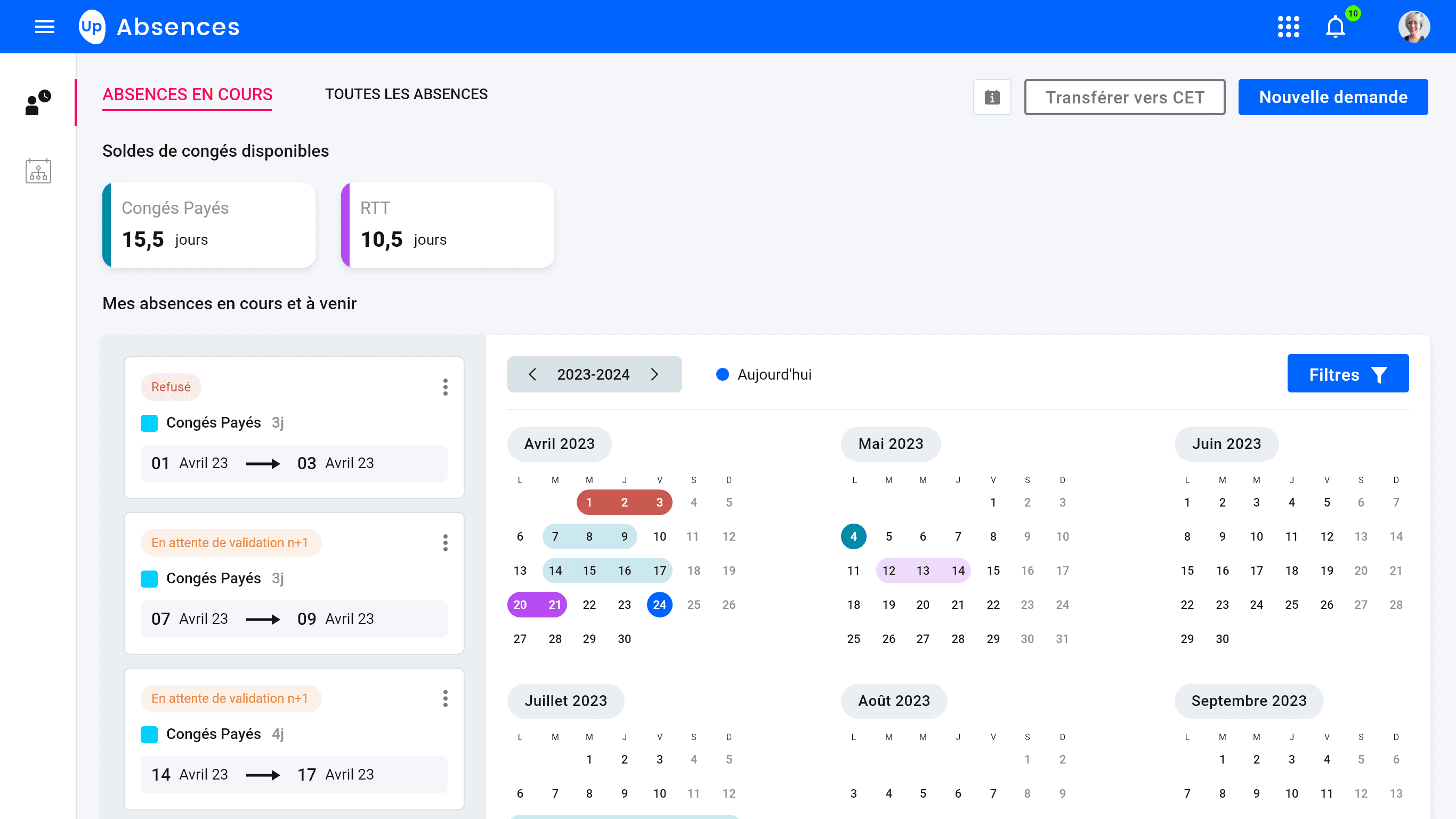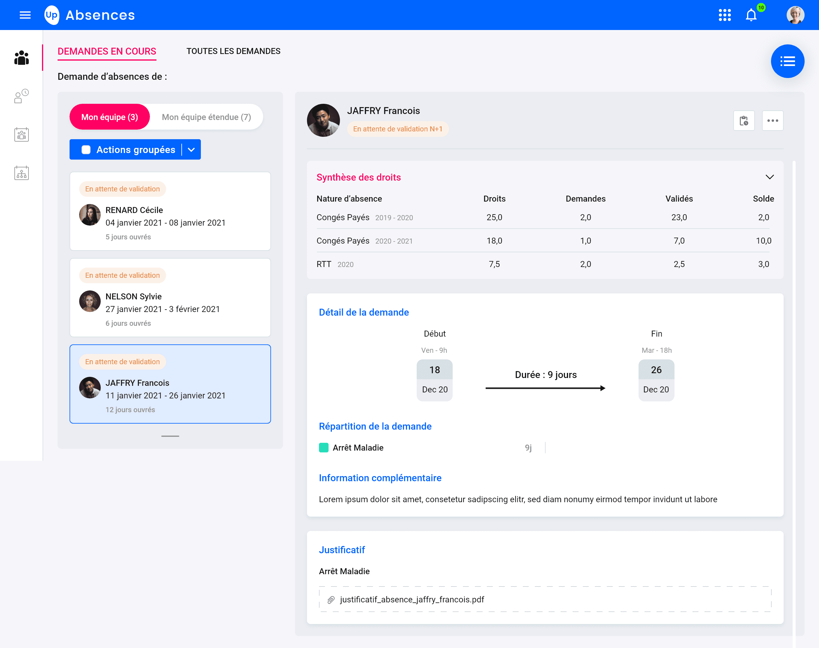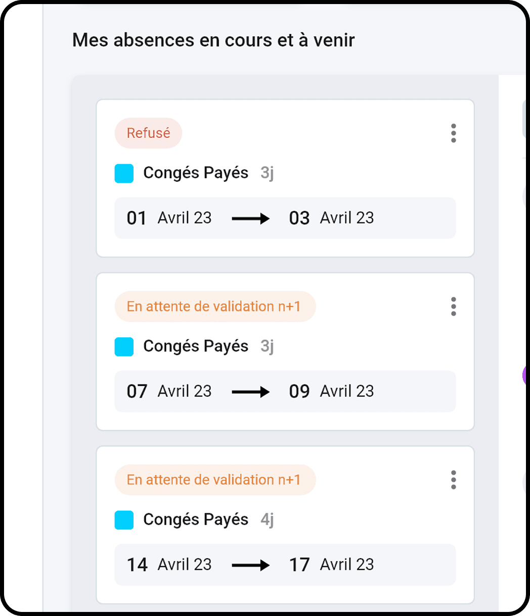 Managers can immediately see what needs their attention. The calendar view helps anticipate the impact of absences on the team.